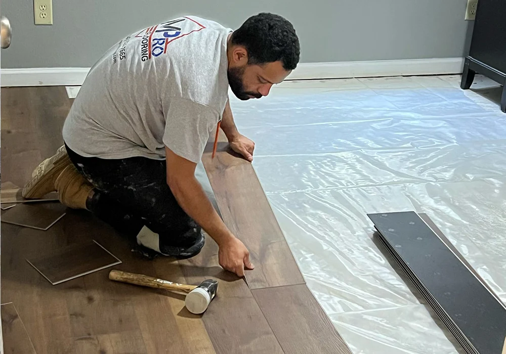 Yes, the flooring we install, like vinyl plank (LVP), is highly water resistant. This makes it an excellent choice for spaces like kitchens, bathrooms, and high-traffic areas.